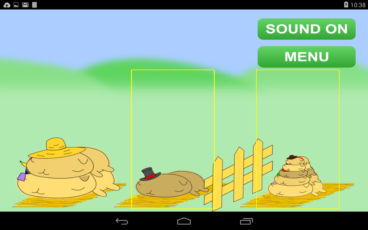 ガイド枠内にタッチすると一番上のカピバラが持ち上がり、今度は動かせる先に黄色いガイド枠が表示されます。